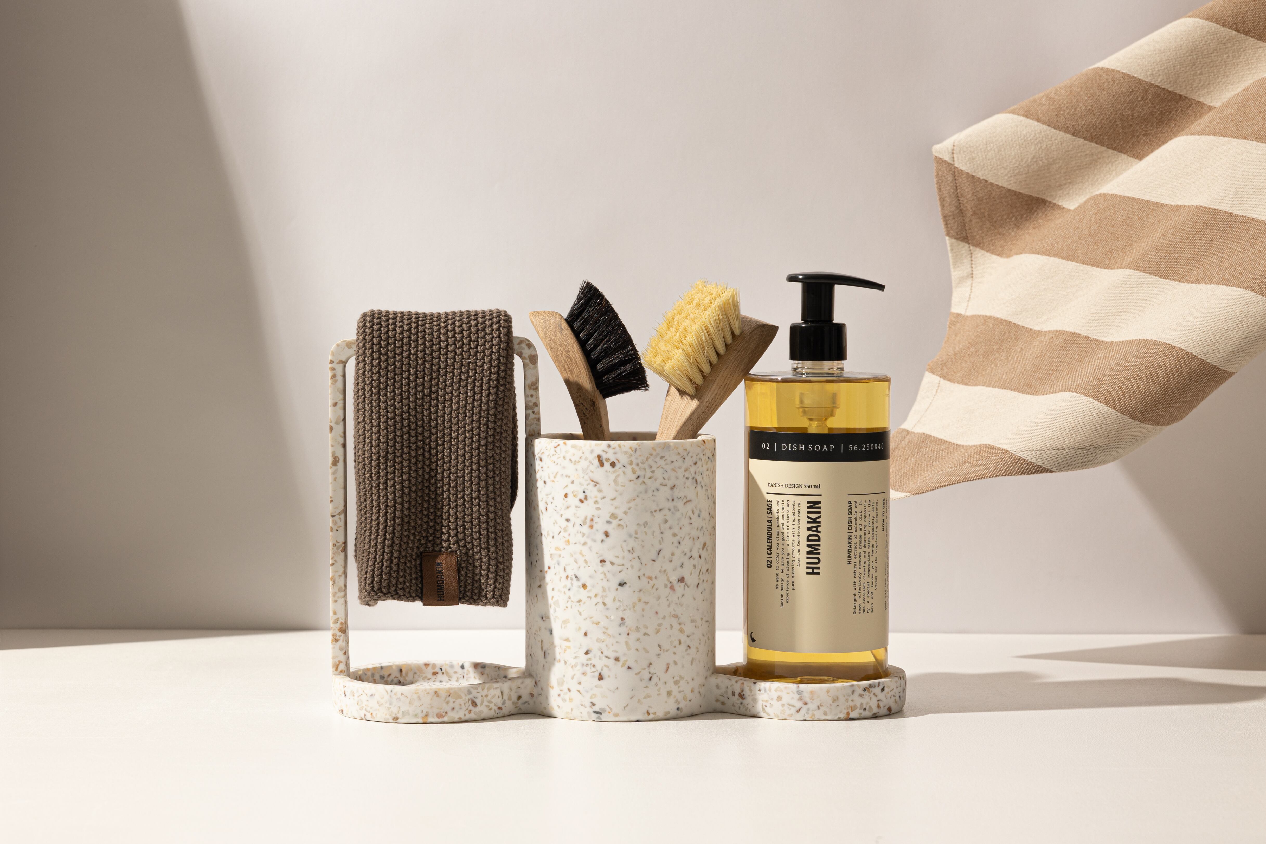 また、HUMDAKINの食器用洗剤(ディッシュソープ)と併せて使うことで、洗練されたお手入れ時間を演出します。